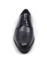 Premium black woven leather lace-up derby shoes for men